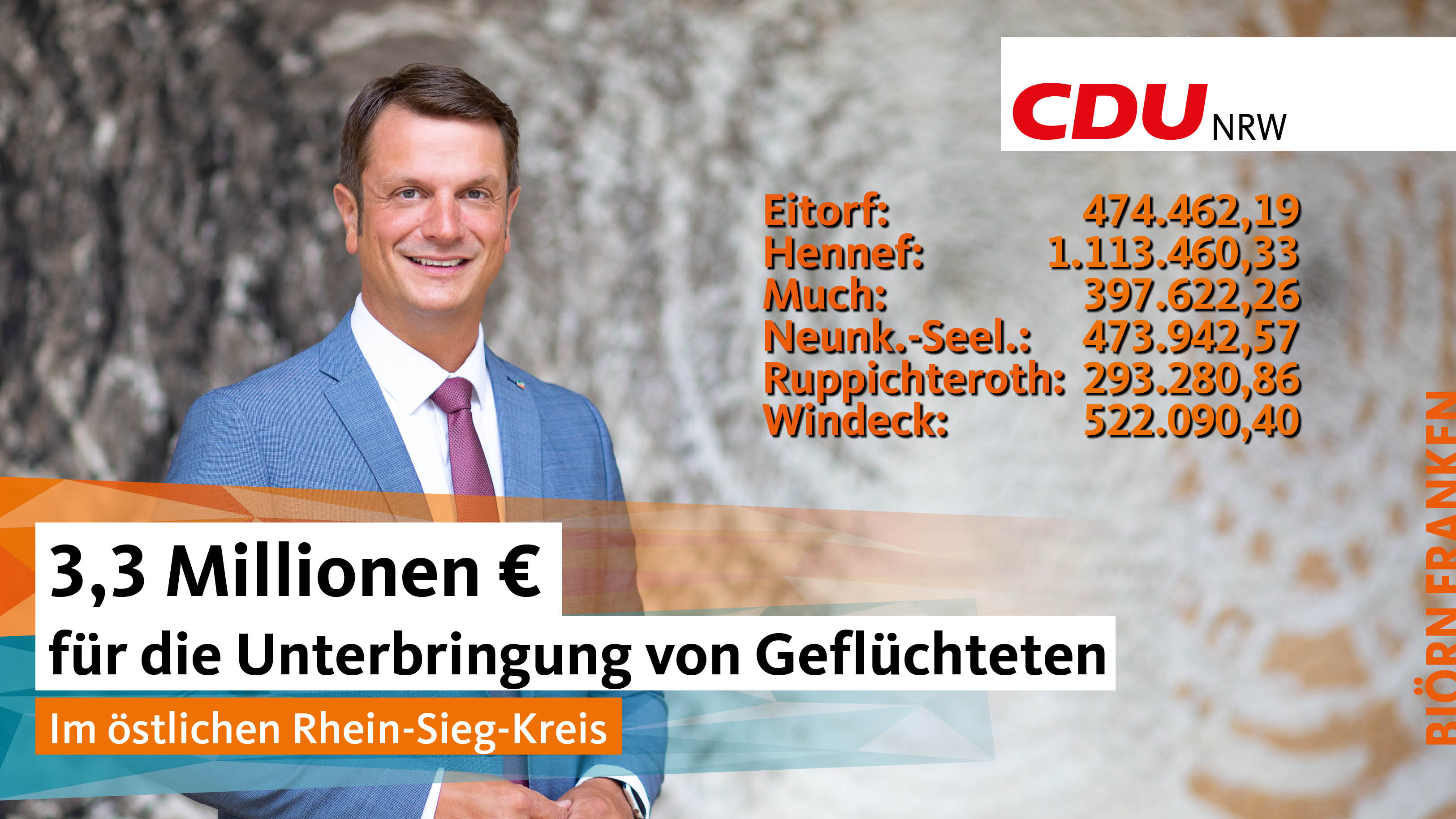 Das Land unterstützt den östlichen Rhein-Sieg-Kreis mit 3,3 Millionen € bei der Schaffung, Unterhaltung und Herrichtung von Unterbringungsmöglichkeiten für Geflüchtete. Insgesamt erhalten die Kommunen in Nordrhein-Westfalen zusätzlich 390 Millionen €. Rund 225.000 Menschen, die vor dem Krieg in der Ukraine geflohen sind, haben Zuflucht in Nordrhein-Westfalen gefunden.