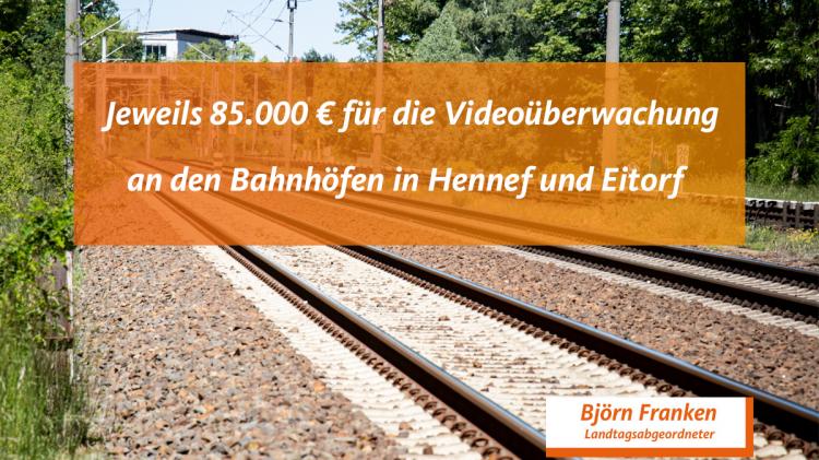 Die Bahnhöfe in Hennef und Eitorf erhalten aus der „ÖPNV-Offensive“ des Landes Nordrhein-Westfalen jeweils rund 85.000 € für die Videoüberwachung. Die beiden Bahnhöfe werden täglich von zahlreichen Pendlern genutzt. Die Installation der Videokameras sorgt für mehr Sicherheit, damit alle Reisenden zu jeder Zeit ein gutes Gefühl haben können. Wir müssen unsere Bahnhöfe so gestalten, dass die Menschen sich hier sicher fühlen und gerne aufhalten. Dazu müssen die Bahnhöfe sauber, sicher und modern sein.