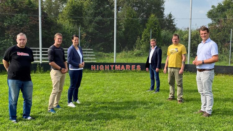 Die Baseball- und Softballabteilung „Neunkirchen Nightmares“ des Turnvereins 1908 Neunkirchen e.V. hat aus dem Förderprogramm „Moderne Sportstätte 2022“ des Landes NRW mehr als 11.000 € für die Errichtung eines Bullpens erhalten. Gemeinsam mit Freunden der CDU Neunkirchen-Seelscheid habe ich das Baseballstadion des Turnverein 1908 Neunkirchen e.V. besucht, um persönlich zu der Förderung zu gratulieren. Für die jungen Menschen, aber auch die gesamte Gesellschaft in unserer schönen Heimat leisten die Verantwortlichen des Vereins wertvolle, ehrenamtliche Arbeit – mein herzlicher Dank dafür! Auch danke ich allen Ehrenamtlern beim Kreissportbund Rhein-Sieg, welche die Organisation der Fördermittel-Beantragung übernommen haben. Damit unsere Sportvereine für ihre ehrenamtliche und sportliche Leistung in modernen sowie zeitgerechten Sportstätten arbeiten können, hat unsere NRW-Koalition mit dem Programm „Moderne Sportstätte 2022“ insgesamt 300 Millionen € bereitgestellt. Mehr als 2.500 Sportvereine haben in den vergangenen zwei Jahren bereits eine Förderung erhalten – eine bisher einzigartige finanzielle Unterstützung für die Sportlandschaft in NRW.