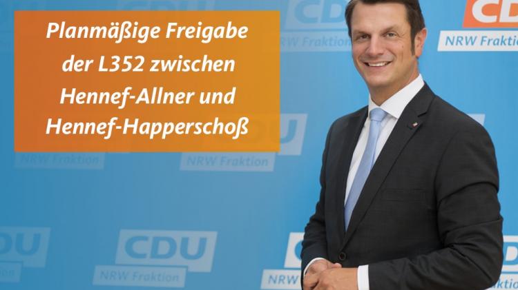 Nach langer Sanierung ist die L352 zwischen Hennef-Allner und Hennef-Happerschoß – wie vom Landesbetrieb Straßen.NRW angekündigt – heute fristgerecht vor dem Beginn der Sommerferien wieder freigegeben worden. Dazu erklärt der CDU-Landtagsabgeordnete Björn Franken: