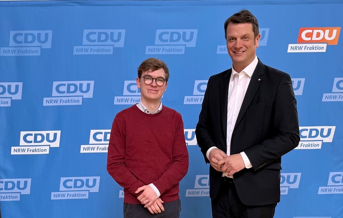„In der Zeit vom 06. März bis 31. März 2023 durfte ich ein Praktikum in Herrn Frankens Abgeordnetenbüro in Düsseldorf absolvieren. Dadurch eröffnete sich mir die Möglichkeit, die Tätigkeit eines Landtagsabgeordneten sowie die ebenso spannenden Abläufe im dahinterstehenden Abgeordnetenbüro kennenzulernen. Dazu zählen die Teilnahme an Ausschüssen sowie das Verfolgen der Beiträge und Reden im Rahmen der Plenardebatte. Darüber hinaus durfte ich an der CDU-Fraktionssitzung sowie an zahlreichen Gesprächen mit externen Beratern und Interessenvertretern vor allem zu digitalpolitischen Themen teilnehmen. Im Fokus der Arbeit im Abgeordnetenbüro stand spürbar die Rückbindung der gewonnenen Erkenntnisse und verfolgten Anliegen an den Wahlkreis. Es hat mich sehr gefreut, dass wir in meinem Praktikumszeitraum auch von einer Gruppe der Senioren-Union und des Jungen Parlaments aus Hennef in Düsseldorf besucht wurden, die im Anschluss an Ihre Führung mit Herrn Franken diskutierten und ihm auch Anregungen zu verschiedenen Themen mitgaben.