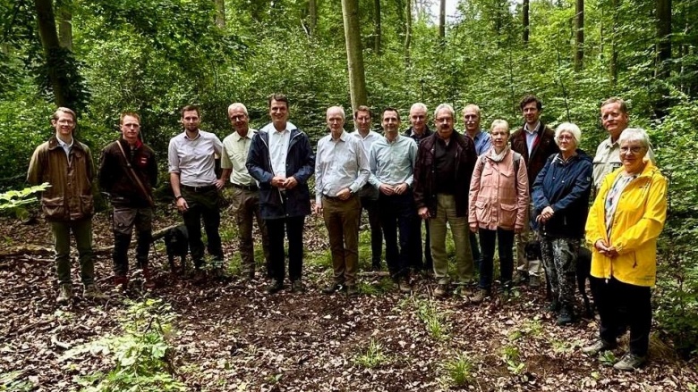 Der diesjährige Prominentenspaziergang der Schutzgemeinschaft Deutscher Wald, Kreisverband Bonn / Rhein-Sieg hat am 27. Juni 2025 in Kooperation mit dem Regionalforstamt Rhein-Sieg-Erft und der Gräflich Nesselrodeschen Verwaltung im Adendorfer Wald stattgefunden. Die Veranstaltung beschäftigte sich mit der Thematik „Fünf Jahre nach dem Borkenkäfer – Kommt nun die nächste Kalamität? Herausforderungen in der Eichenbewirtschaftung.“ Dieser Fragestellung widmete sich auch der Gastgeber, Georg Freiherr von Loë, im Rahmen seiner eindrücklichen Führung durch den Adendorfer Forstbetrieb.