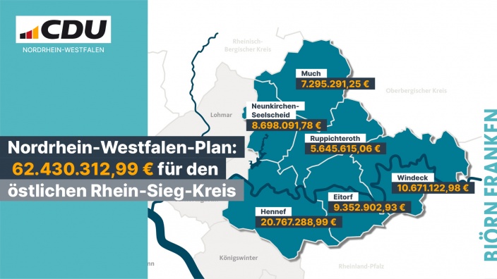 23.10.2025 NRW-Plan: Mehr als 62 Millionen Euro für den östlichen Rhein-Sieg-Kreis Mit dem Nordrhein-Westfalen-Plan für gute Infrastruktur hat unsere Landesregierung das größte Investitionsprogramm in der Geschichte des Landes...